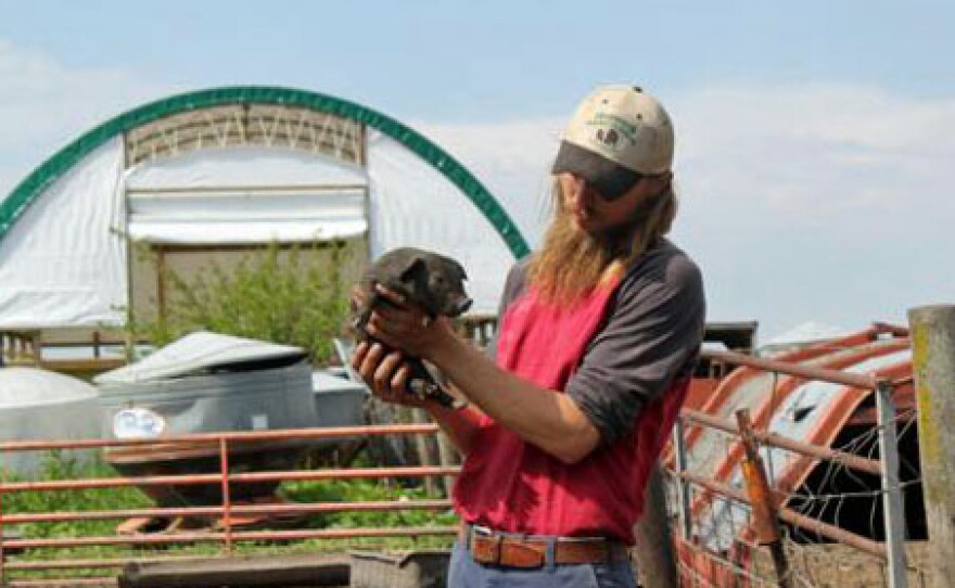 Devan Green is a 27-year-old farmer in Conrad, Iowa. His buildings are old — he says many haven’t been updated since the 1970s. Broken or abandoned equipment rusts on the edges of the pasture where cows, pigs, sheep and ducks graze.