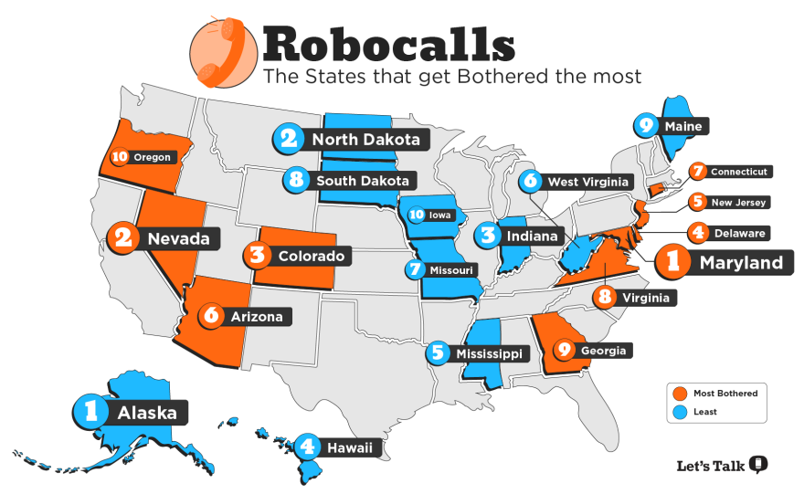 In the wake of Congress passing new regulations on robocalls last month, Let's Talk decided to track which states received the most calls. They did so by looking at reported complaints and the number of blocked calls by robocall blocking apps.