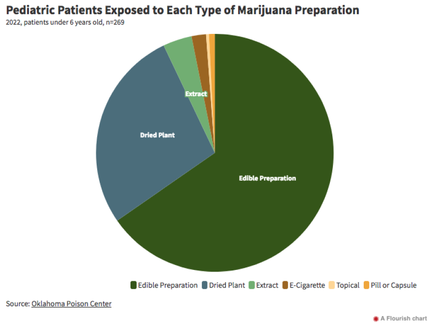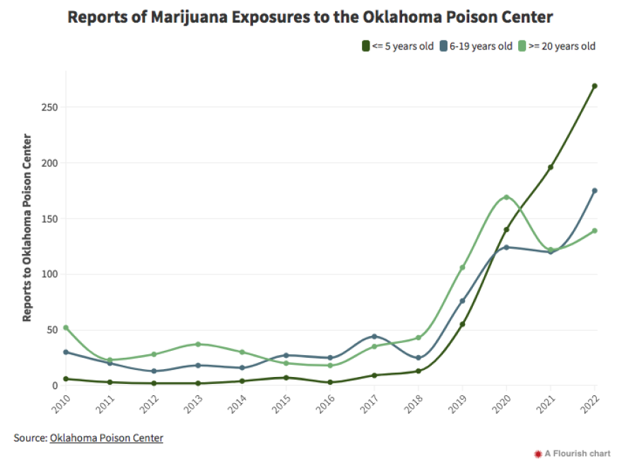 In 2022, 583 cases of accidental marijuana consumption were reported to the Oklahoma Poison Center. Almost half involved a child under 6 and most involved edibles.