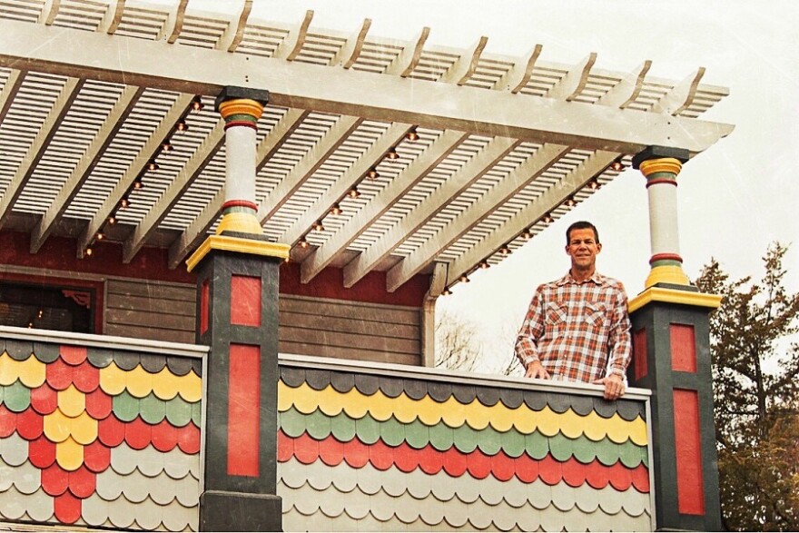 Joel Kuchera, standing beneath the pergola the Little Spouse convinced him to build through "The Home Project Method."