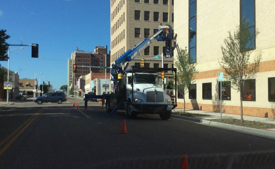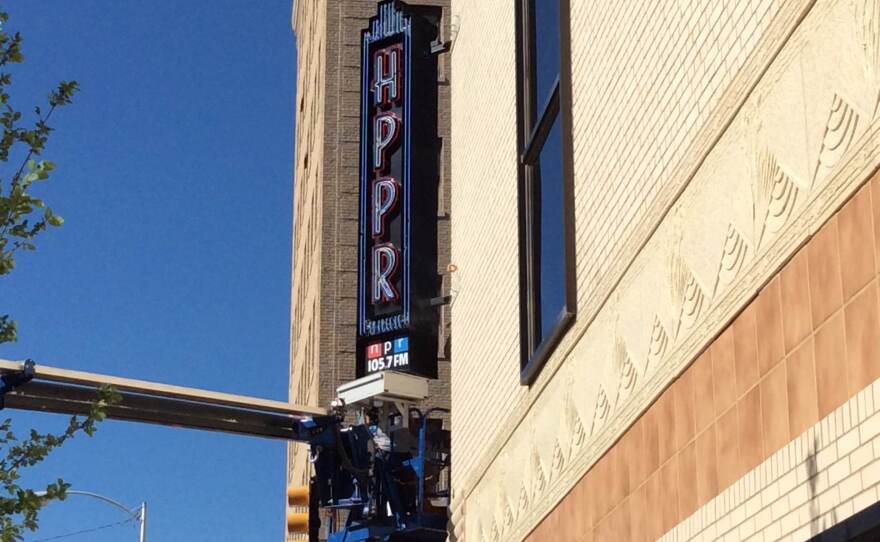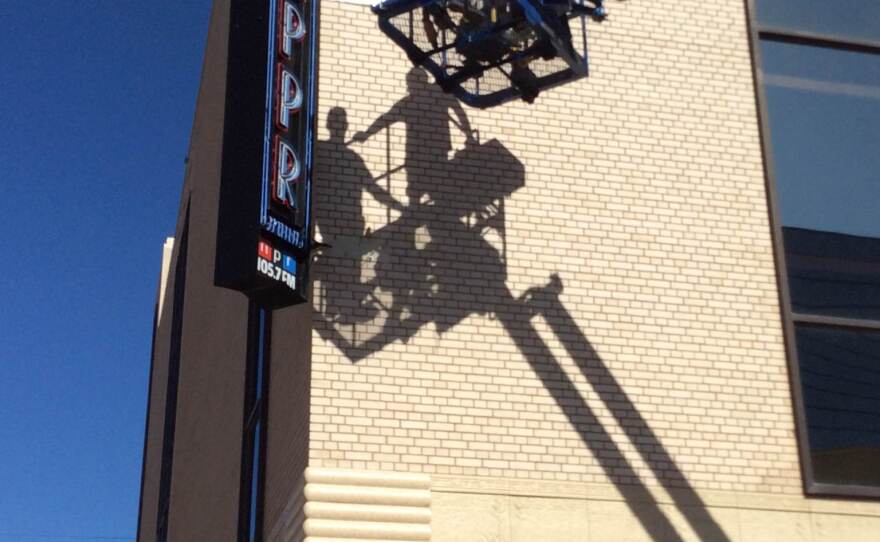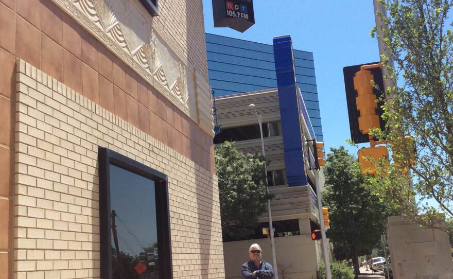 The neon sign saying, "Hey, this is where High Plains Public Radio lives," is back. It's lighting up the corner of 6th and Polk Street in Amarillo.